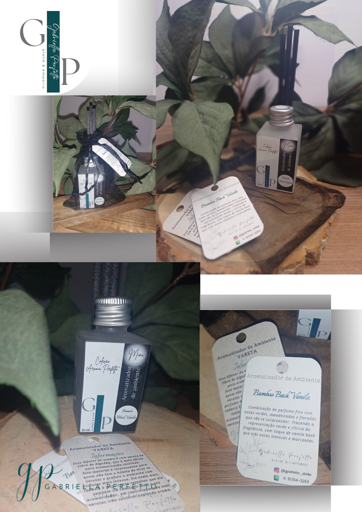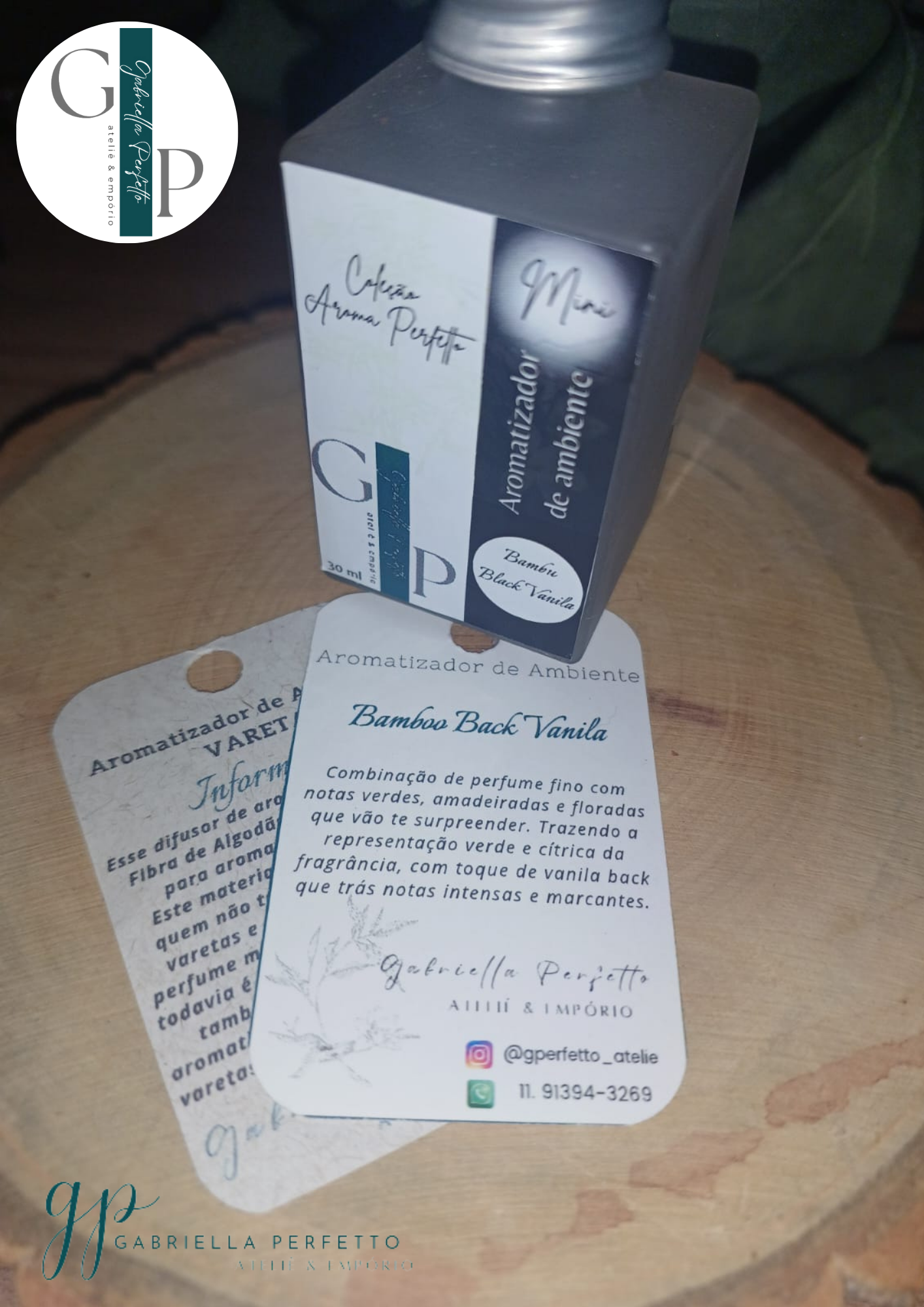 Aromatizador Ambiente | Vanila Back – 30 ml – Acompanha varetas e saquinho de organza preta