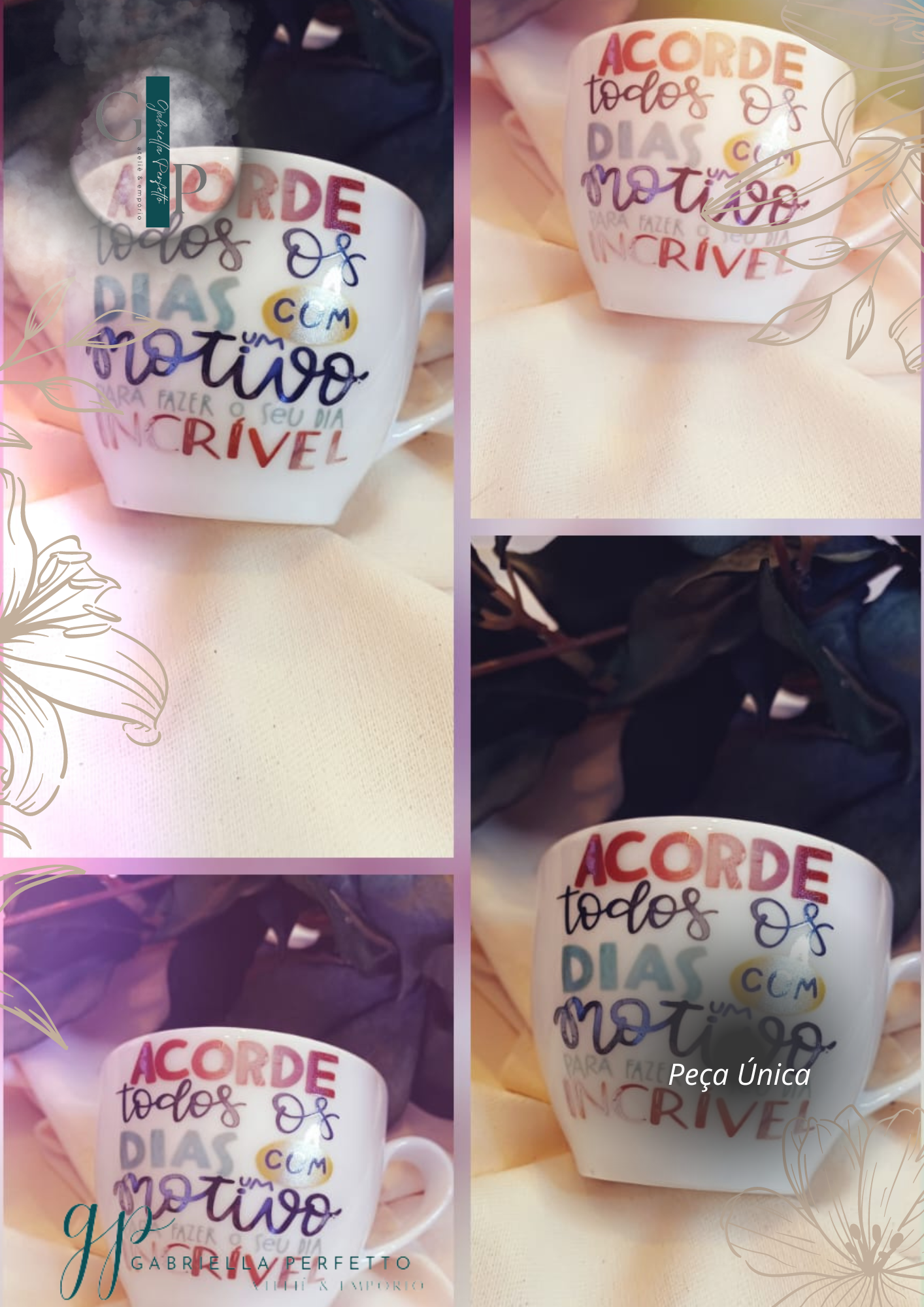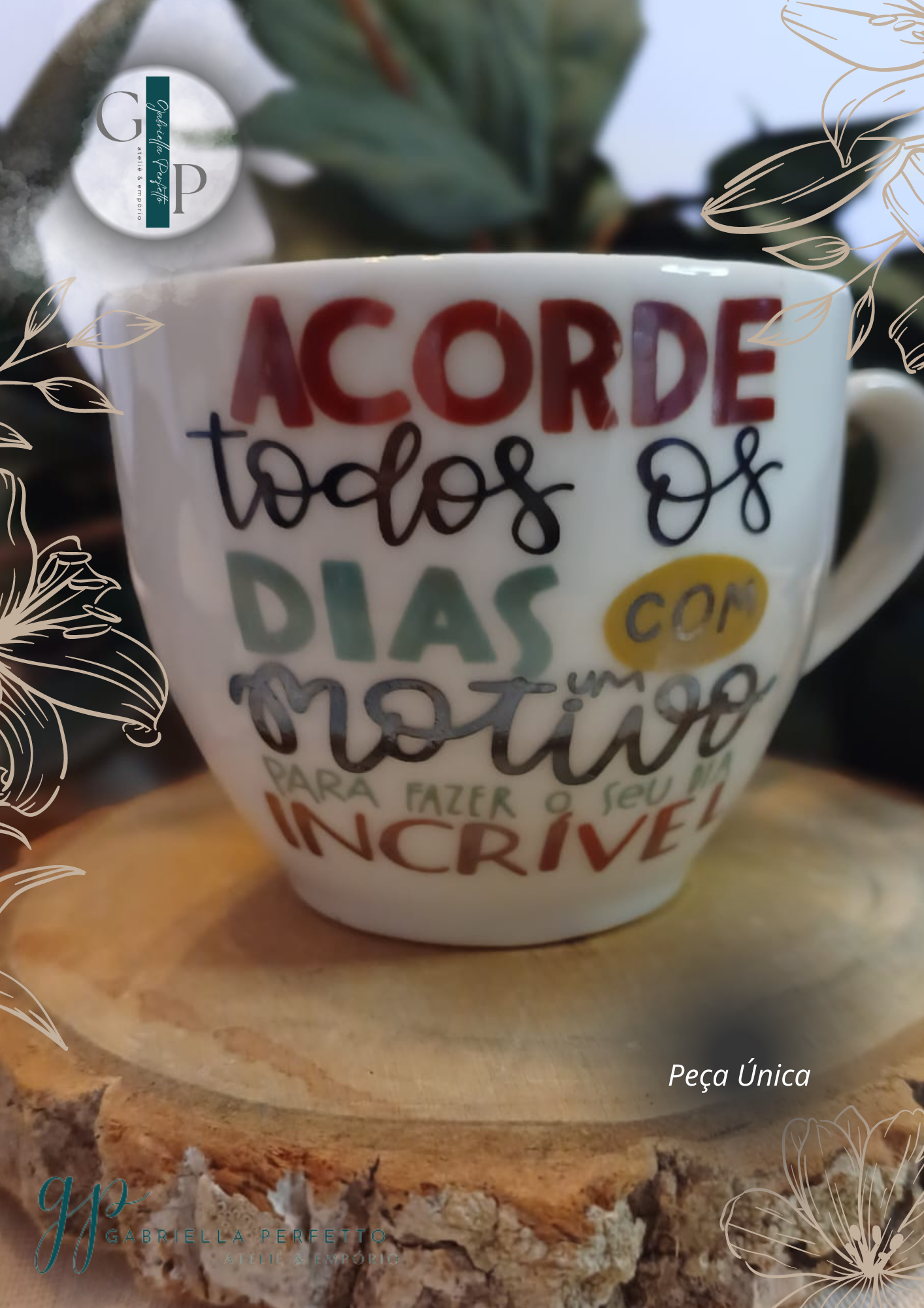 Caneca Porcelana com Frases – 180 ml | Acorde todos os dias com um motivo para fazer o seu dia incrível