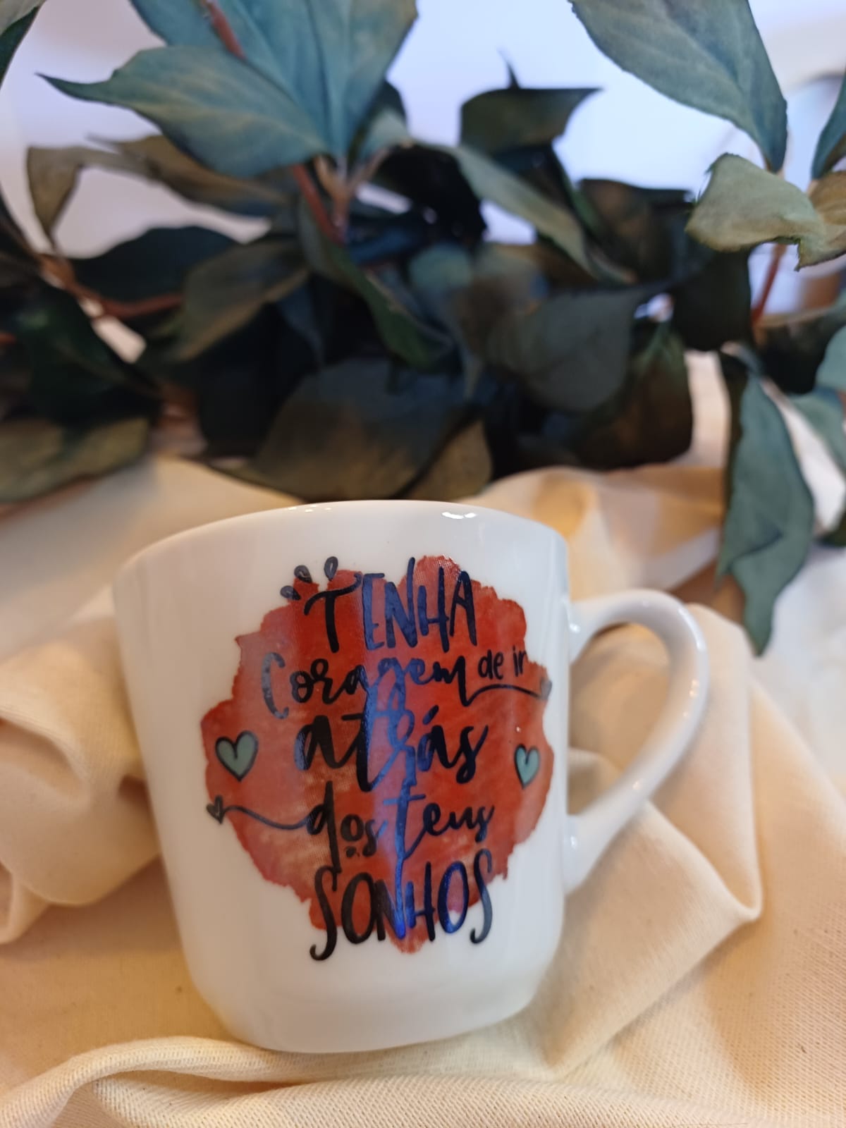 Caneca Porcelana com Frases – 200 ml | Tenha coragem de ir atrás dos teus sonhos