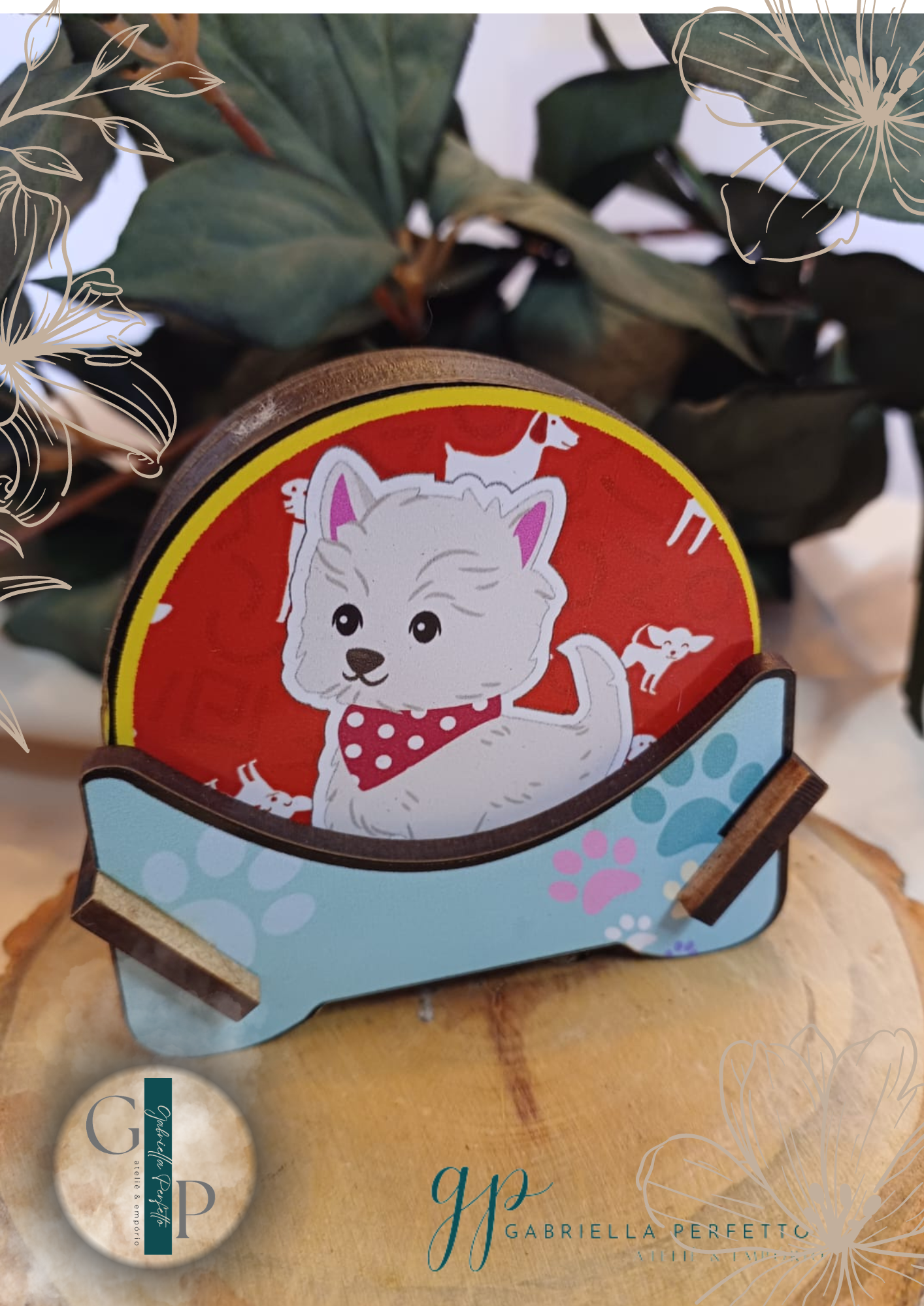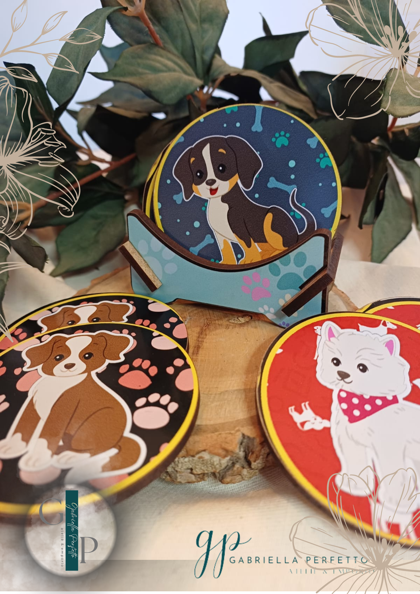 Porta Copos Descanso Com Suporte MDF Cachorro