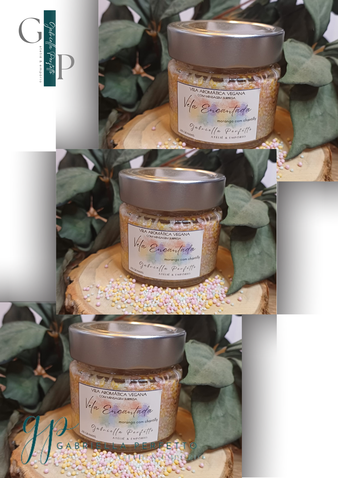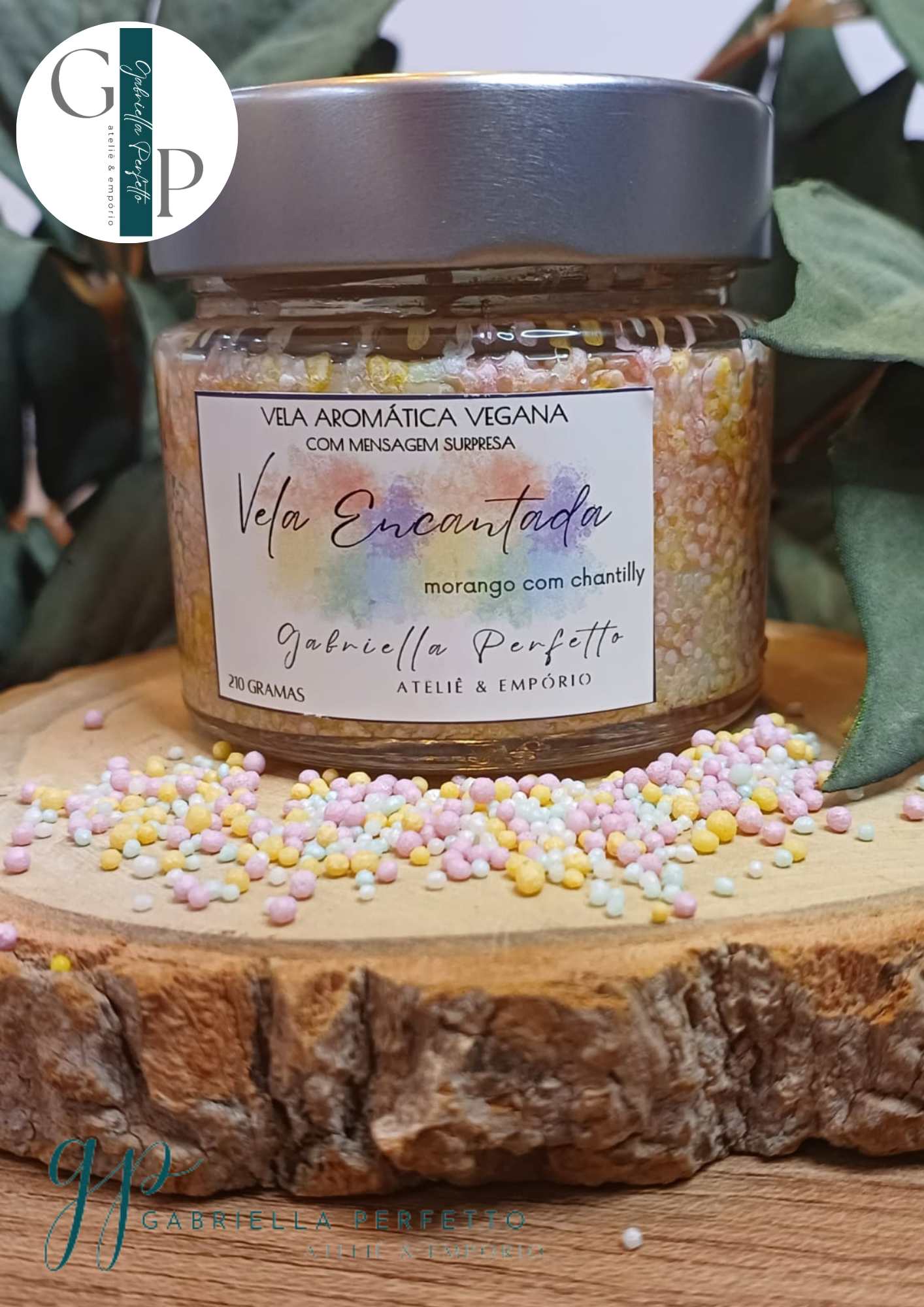 Vela Aromática Vegana com mensagem | Encantada – 110 gramas com potinho de fósforo